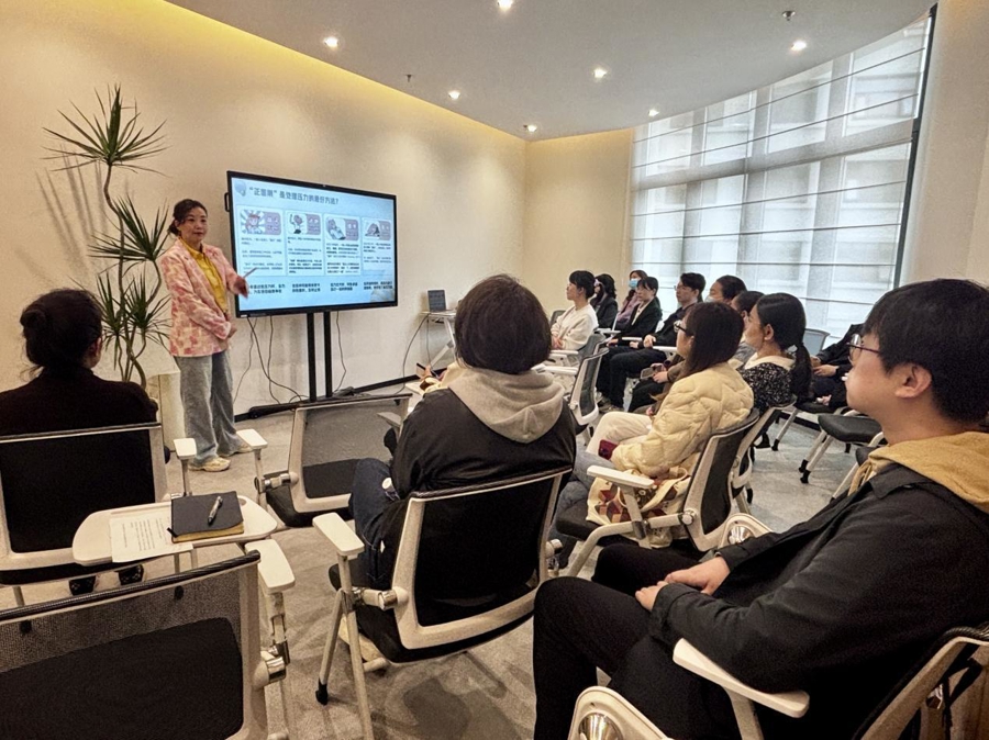 当日下午超凡国际APP,首场公益讲座如约开讲。上海市精神卫生中心精神科副主任医师金金以“职场心理赋能沙龙——四维压力平衡法则”为题开讲。