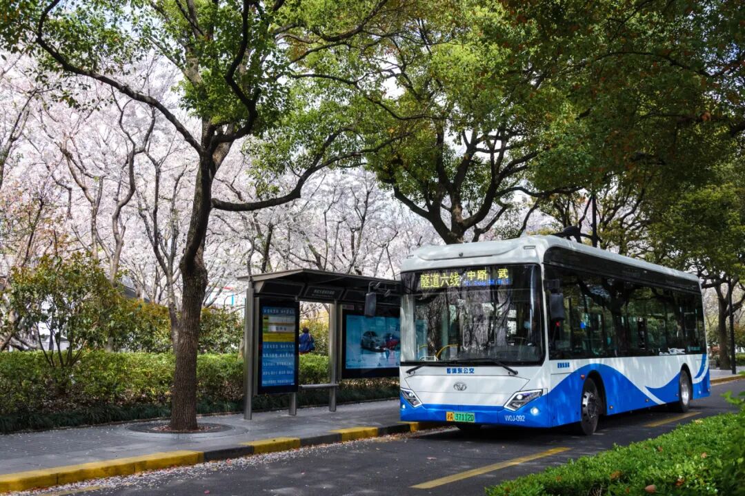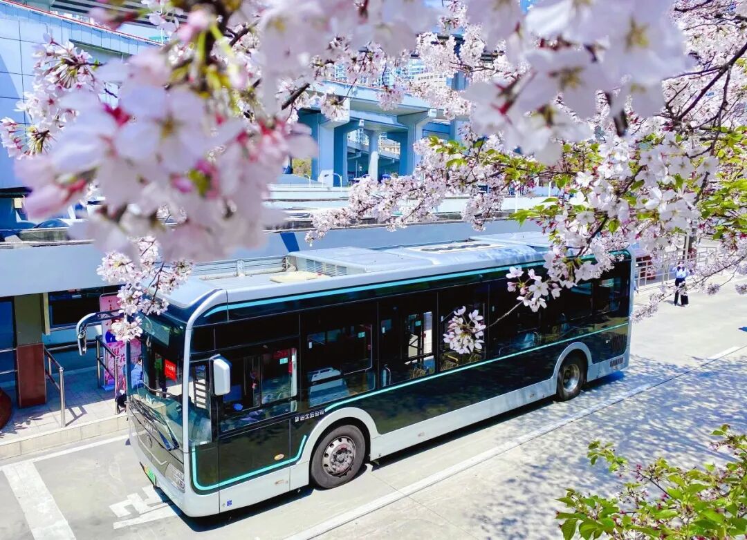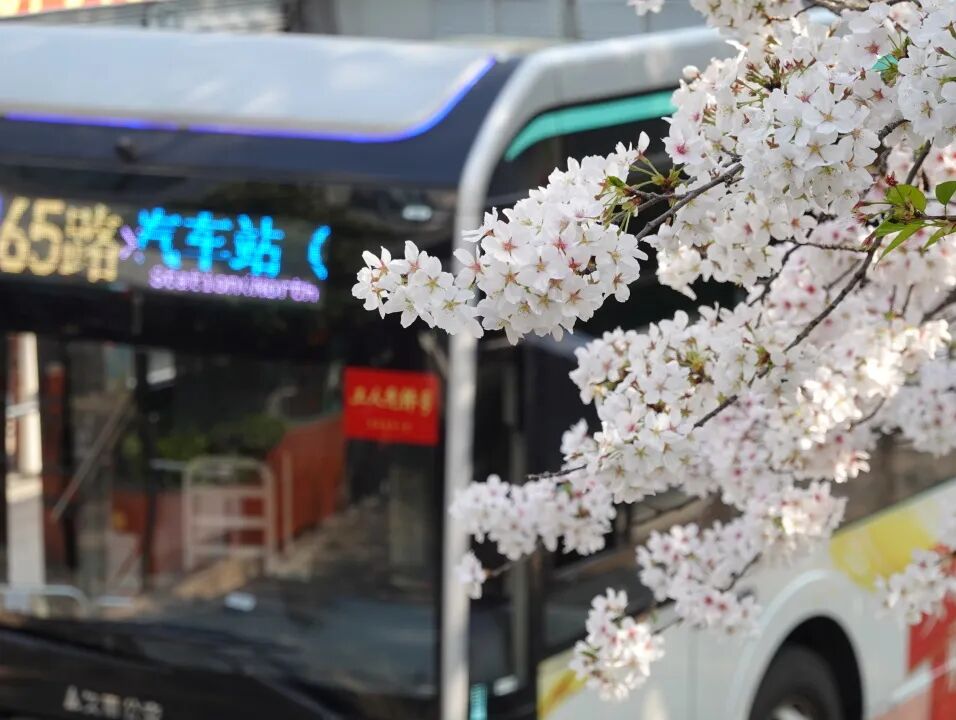 拍下公交车在樱花中穿梭的瞬间~
