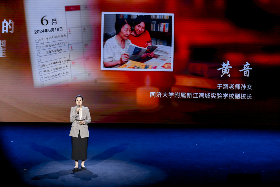 “奶奶总跟我说,教师的真正成长在于个人内心的深度觉醒,想做一件事,才有可能把一件事做好。”在“人民教育家”于漪老师追忆缅怀活动现场,于漪老师的孙女、同济大学附属新江湾城实验学校副校长黄音一开口,便将每一个人的思绪拉回了与于漪老师相伴的时光里。今天(29日),是于漪老师离去的第十四天,这场由杨浦区教育工作党委、杨浦区教育局举办的缅怀活动,让全区教育人齐聚一堂,不少教师代表静静聆听,泪水悄然浸湿眼眶,以最真挚的思念,送别这位深耕教育七十余载的“大先生”。