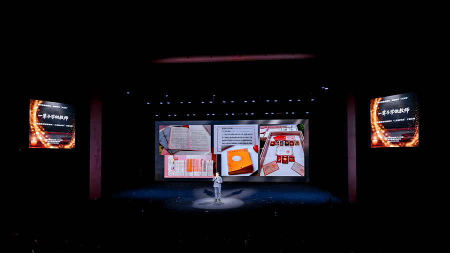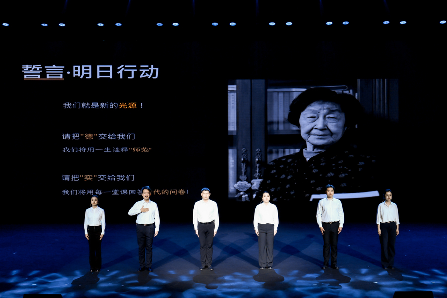 缅怀活动在激昂悠扬的《红旗颂》中启幕,于漪老师的亲人、同事、学生、区域校园长和青年教师代表,通过讲述、诵读等形式,串联起她七十余载的教育人生,展现其“一辈子做教师,一辈子学做教师”的赤诚初心。