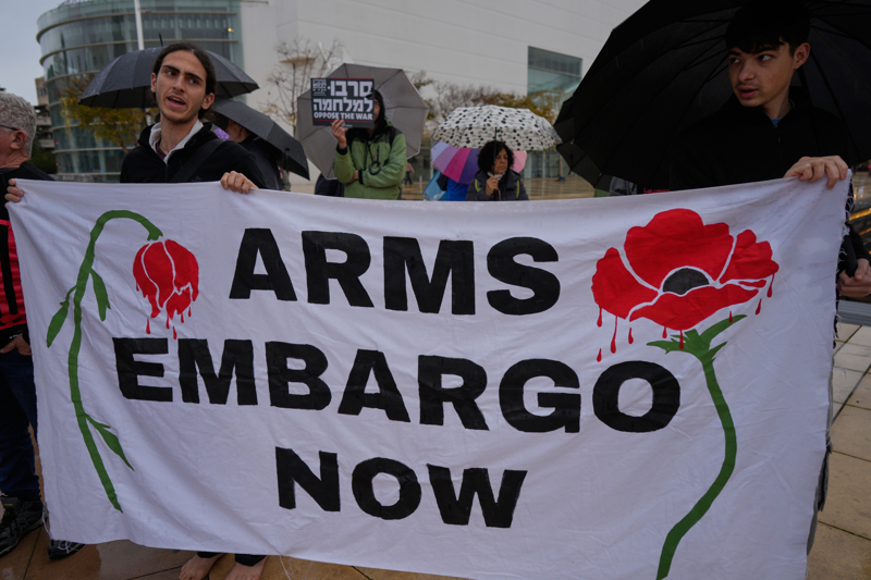 3月21日,人们在特拉维夫参加集会,抗议美国和以色列对伊朗发动军事打击。新华社发